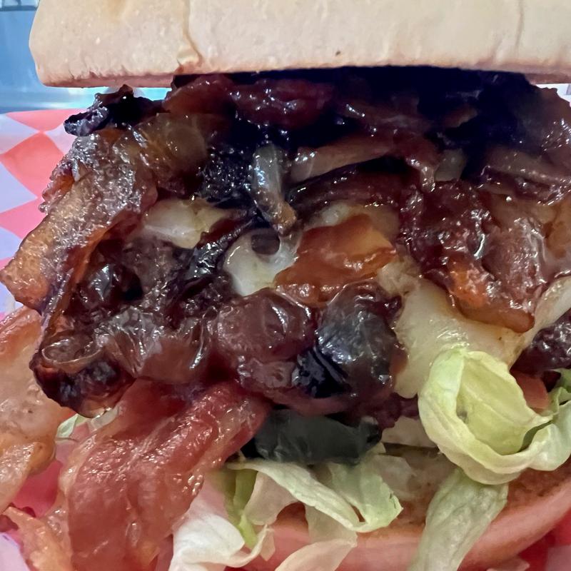 Bacon jam, grilled jalapeños, bacon, lettuce, tomato, and Pepper Jack cheese on brioche bun